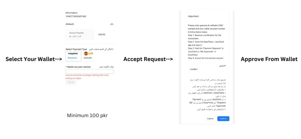 - Confirm the payment in your Easypaisa or JazzCash app to complete the deposit.
